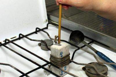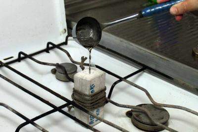 В момент кристаллизации расплава создаётся давление деревянной палочкой, подогнанной под литник